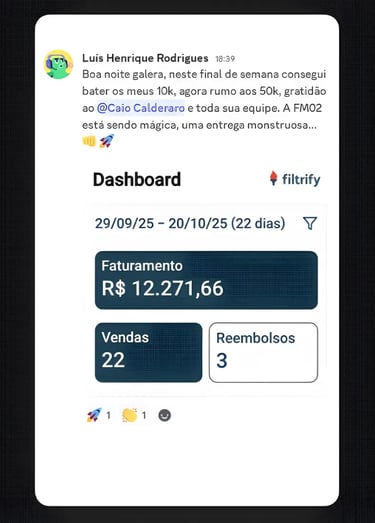 Mentoria avançada de aceleração, feita para quem já está no jogo e quer escalar resultados com acompanhamento direto.
