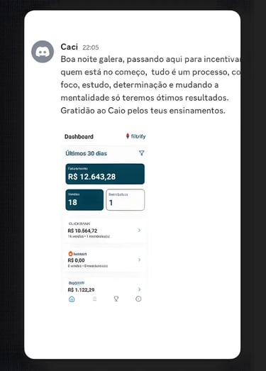 As aulas ficam disponíveis para assistir quantas vezes quiser, e as mentorias permitem interação direta com o Caio e sua equipe. Além disso, os alunos têm suporte na plataforma Discord e por WhatsApp, onde podem tirar dúvidas e trocar experiências com outros participantes.