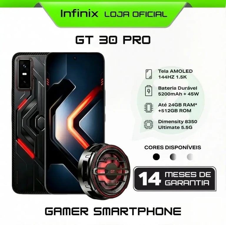 O Infinix GT 30 Pro redefine a experiência de alta performance, sendo a escolha ideal tanto para gamers exigentes quanto para quem busca um aparelho extremamente fluido e ágil no dia a dia. Seus diferenciais exclusivos proporcionam uma vantagem competitiva real em jogos, enquanto a tela de altíssima qualidade garante uma visualização impecável e imersiva em qualquer ambiente, mesmo sob luz solar intensa.